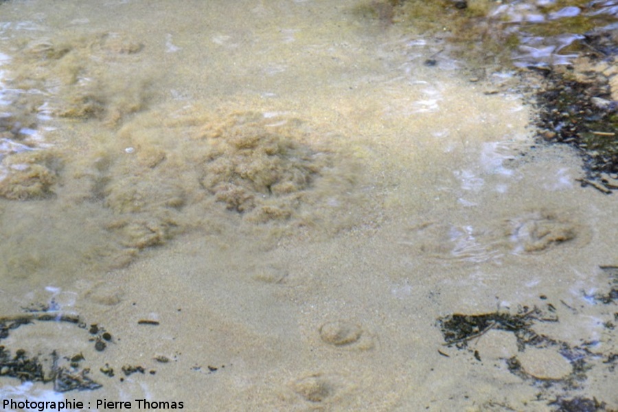 Under certain conditions, the particles of this micro-suspension have the right size and concentration to cause the diffusion of small wavelengths of daylight and give these sources exceptional blue colors. Thus these sources are called "blue waters".