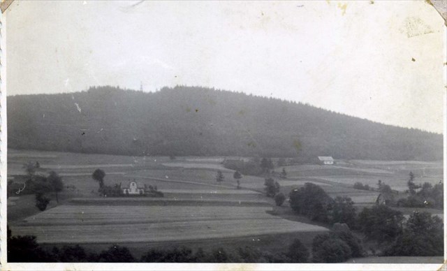 Zelená na staré fotografii s dřevěnou rozhlednou