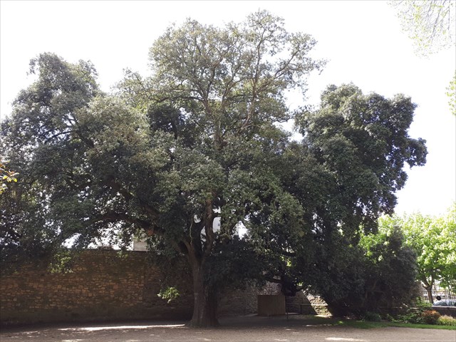 Peu connu, il abrite pourtant un arbre remarquable, un chêne vert, dénommé aussi yeuse. Voilà six siècles que ce chêne vert aurait été planté par des sœurs Augustines, dans un jardin qui est maintenant celui du tribunal. Le chêne vert a un feuillage persistant, contrairement à ses congénères. On le nomme aussi chêne faux houx car ses feuilles ressemblent à celles du houx. Elles restent vertes toute l'année. Cet arbre grandit très lentement. Son tronc n'est pas imposant. Mais il est très vieux et devient une star de Lannion. Dans un projet, qui prévoit une réhabilitation du tribunal avec une extension au profit des écoles de musique, il est dit que cet arbre ne devra pas être touché par les travaux. Il était sacré autrefois. Il devient sacré, vu son grand âge, aujourd'hui.