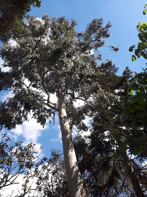 Dans le jardin, on trouve aussi des eucalyptus, réputés pour leur grande taille. Ils dépassent en taille allègrement le chêne vert. Originaires d'Australie, ils ne supportent pas les grands froids. C'est pour cela qu'on en trouve en Bretagne, à proximité des bords de mer où ils s'acclimatent bien. Les eucalyptus ont la particularité de faire fuir les insectes. On les a utilisés en Afrique pour tenter d'enrayer avec succès le paludisme donc le principal vecteur est un moustique. Comme ils sont gourmands en eau, ils permettent également d'assécher les zones marécageuses.
