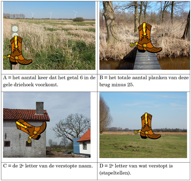 Let op, je volgt de route van het laarzenpad. Het is raadzaam om laarzen te dragen, want het kan behoorlijk drassig zijn.