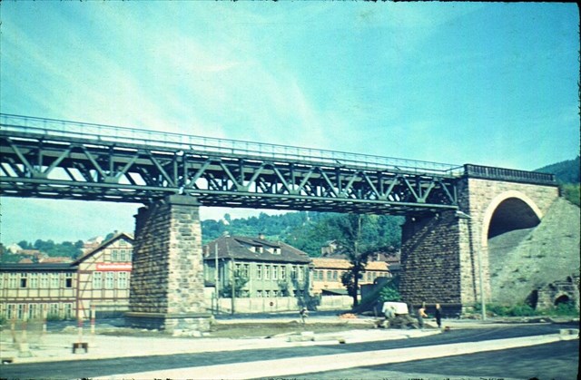 Ist eigentlich schon einmal jemandem aufgefallen, dass die Bahnstrecke in Richtung Zella-Mehlis nur ein Gleis hat? Dies war nicht immer so. Die Brückenpfeiler sind, wie man auch heute noch sieht, ausreichend breit für zwei Gleise. Eines der Gleise wurde 1945 demontiert und in Richtung Sowjetunion verbracht.
