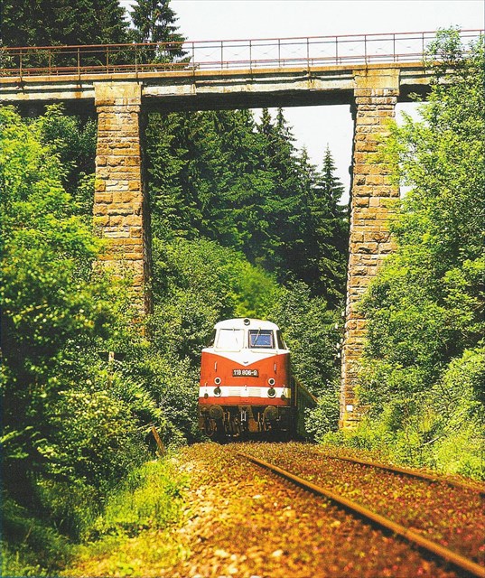 Wie ich in der Nähe der Finaldose erfahren habe, wurde diese 15,84 km lange Strecke als letzte im Thüringer Raum gebaut und erst 1911 eröffnet. Aufgrund der starken Steigung von bis zu 7,06 % wurde ein Teilstück sogar als Zahnradbahn hergestellt. Die Fahrzeit mit Zahnradlokomotiven betrug jedoch 70 Minuten. Mit der Dampflok dauerte es seit etwa 1929 nur noch 45 Minuten. Aber auch mit dem Dampflokbetrieb war es im September 1974 vorbei. Bis zur Schließung der Strecke im Mai 1997 waren hier nur noch Dieselloks unterwegs, die für die Strecke 28 Minuten brauchten. Eine Elektrifizierung der Strecke ist also nie erfolgt.
