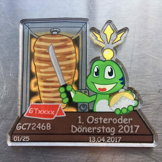 Der Dönerstag ist eine Serie von Event-Caches, die seit 2007 jährlich am Gründonnerstag an Döner-Imbissen stattfindet. Dieses Jahr ist der Gründonnerstag der 13. April 2017 und erstmals wird es ein Souvenir für die Teilnahme an einem Dönerstag-Event geben. Wenn das nicht Grund genug ist, den 1. Osteroder Dönerstag ins Leben zu rufen.