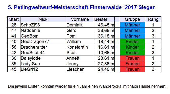 Hier könnt Ihr die Auswertung und die Wurfliste ansehen und downloaden: