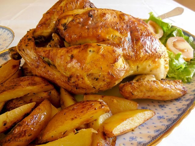 Acompanhe o frango com as batatas e uma salada