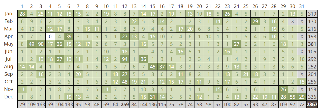Voila plusieurs mois que mon calendrier Géocaching me nargue terriblement... cette tâche encore blanche sur un calendrier, cette toute dernière petite case : c'est pire qu'un calendrier de l'Avent !! Il ne faut pas attendre 24 jours avant de manger le dernier chocolat. Il faut patienter sagement 365 jours avant de pouvoir ouvrir cette dernière case, et faire verdir ce tout dernier jour sur le calendrier des jours géocachés !!