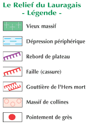These hills are formed from molasse interrupted with layers of stoneware and limestones and which occupies the major part of Lauragais, from St Félix to Lanta, from Laurac to Castanet including Nailloux and Montgiscard.