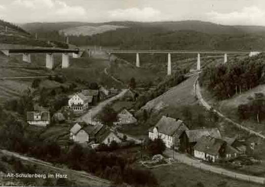 Das frühere Schulenberg war eine Bergbau- und Hüttensiedlung aus dem 16. Jahrhundert. Der Ort gliederte sich in die Ortsteile Ober-, Mittel- und Unterschulenberg. Etwas oberhalb des Ortes befanden sich die Gruben des Schulenberger Reviers, gefördert wurde vor allem Silber, Kupfer und Blei. Mit der Aufgabe der Gruben, die letzte und ergiebigste war die Grube Juliane Sophia im Jahr 1904, lag der Hauptwirtschaftszweig von Schulenberg im Holzbau. Unterschulenberg wurde schließlich 1954 verlassen und die Gebäude bis auf die Grundmauern abgerissen, um der neu erbauten Okertalsperre Platz zu machen. Die Bürger fanden westlich ihrer alten Wohnstätte auf dem Kleinen Wiesenberg ein neues Zuhause. Dort entstand das heutige Schulenberg, zirka 60 Meter über dem Stausee gelegen. angelehnt an den Wikipedia-Artikel