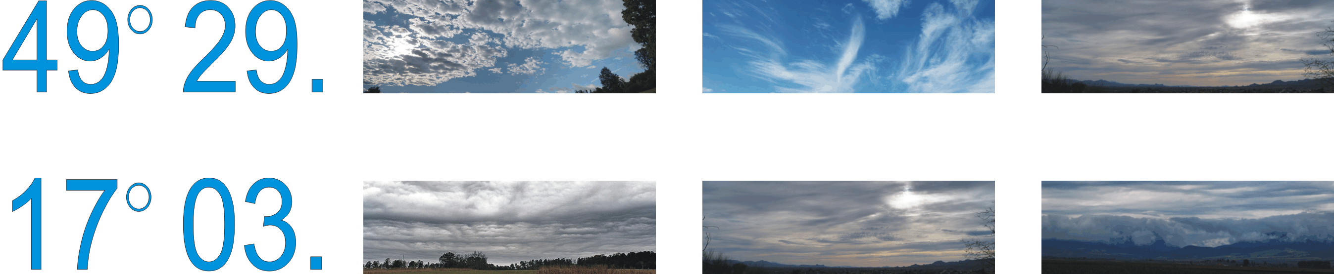 Rád se dívám na oblohu. Fascinují mě mraky. Jejich tvary jsou nádherné. Od jemných vatových cirrů přes bouřkové věže cumulonimbů a krásně baculaté cumuly na blankytně modré obloze, při kterých si vždy vzpomenu na úvod seriálu Simpsonovi. Prostě je to uklidnující dívat se na plující oblaka nejrůznějších tvarů a barev. I šedivá barva zimních mraků, ze kterých se k zemi snáší bílé vločky, je kouzelná. Zkuste se někdy podívat vzhůru na oblohu při toulkách za kěškami. Určitě to bude stát za to a bude to pokaždé zcela nový pohled.