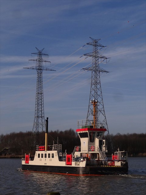 Hier ein Blick auf die Querung der Leitung über den Nord-Ostsee Kanal. Links im Bild ist der Rückbau der alten 110.000 Volt Leitung zu sehen: