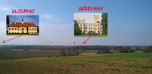 Na tomto místě už jednou keš byla, ale bohužel skončila v archívu, i když jsem ownerovi nabízel údržbu. Ne, že by se jednalo o bůhvíjak úžasné místečko, ale původní krabička (s názvem Výhled na Sloupno a Skřivany) byla naší první keškou, to znamená naše číslo 1. Takže z čisté nostalgie tady vytvářím náhradu, jenom s jiným úkrytem. Od keše je vidět zámek ve Skřivanech i část zámku ve Sloupně. K lepšímu rozhledu lze (na vlastní nebezpečí) využít posedu, ale nahoře keš není!!