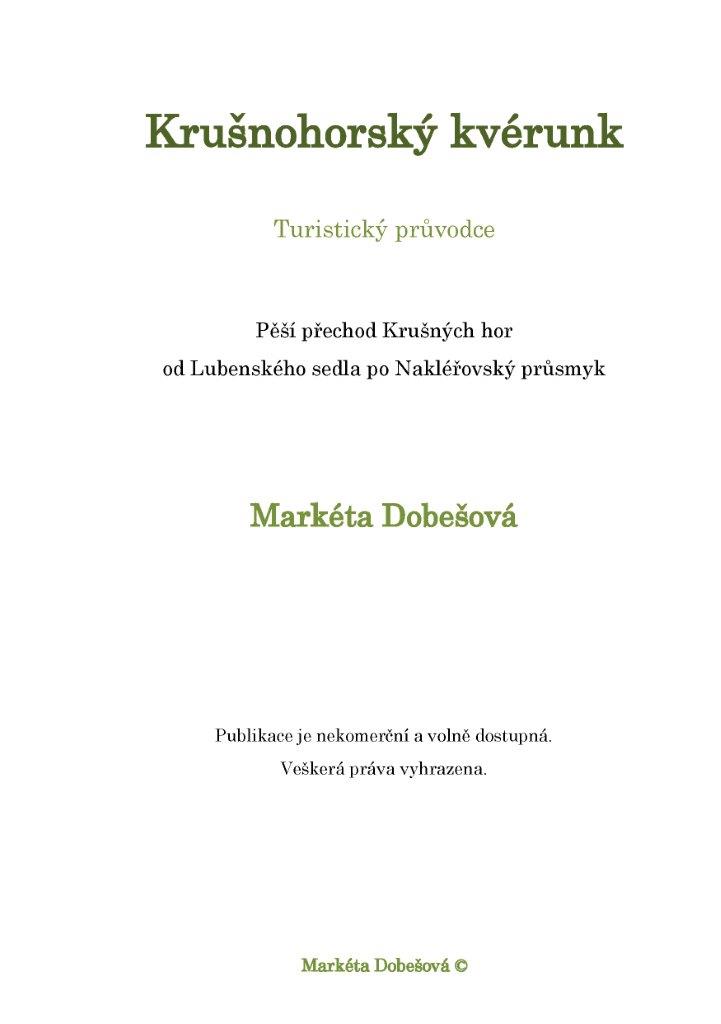 Je na vás, jaký smysl své cestě přes Krušné hory dáte. Zda najdete cíl v poznání naší vlasti, proniknutí do historie, splynutí s přírodou, dlouhé pouti přes hory, či poznání sebe samého. Věřím, že až dojdete na konec, pochopíte, proč jste tuto cestu šli. Budete vědět, čím vás obohatila a poznáte, co jste se díky ní naučili. A že nebudete litovat strastí, které vás potkaly při jejím podniknutí.