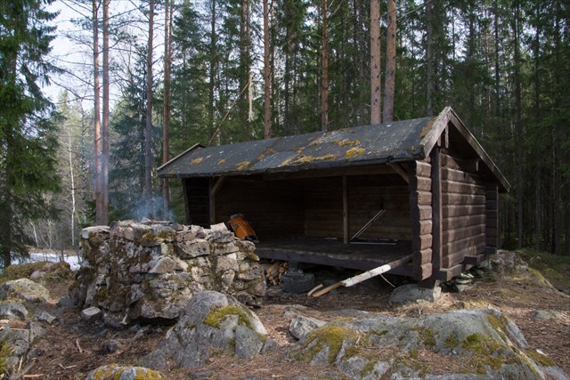 Vid Lilla Älgsjön finns förutom ett fint vindskydd med grillplats också en övernattnings-stuga med sovplats för 8-10 personer. Tältning är tillåten men det finns inte så många plana ytor bland alla mossiga stenar. Vi kommer att övernatta på platsen och hoppas att vi får gott sällskap.