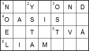 Nu ska du göra ett ord av alla de bokstäver som står i rutorna med numrering som du just skapat. I det fall en numreringssiffra står både för vågrätt och lodrätt skriver du den enbart en gång. I exemplet ovan skulle det bli "NYOOTL". Det är detta du knappar in i Certitude nedan. Hur många bokstäver det blir tänker jag inte tala om.