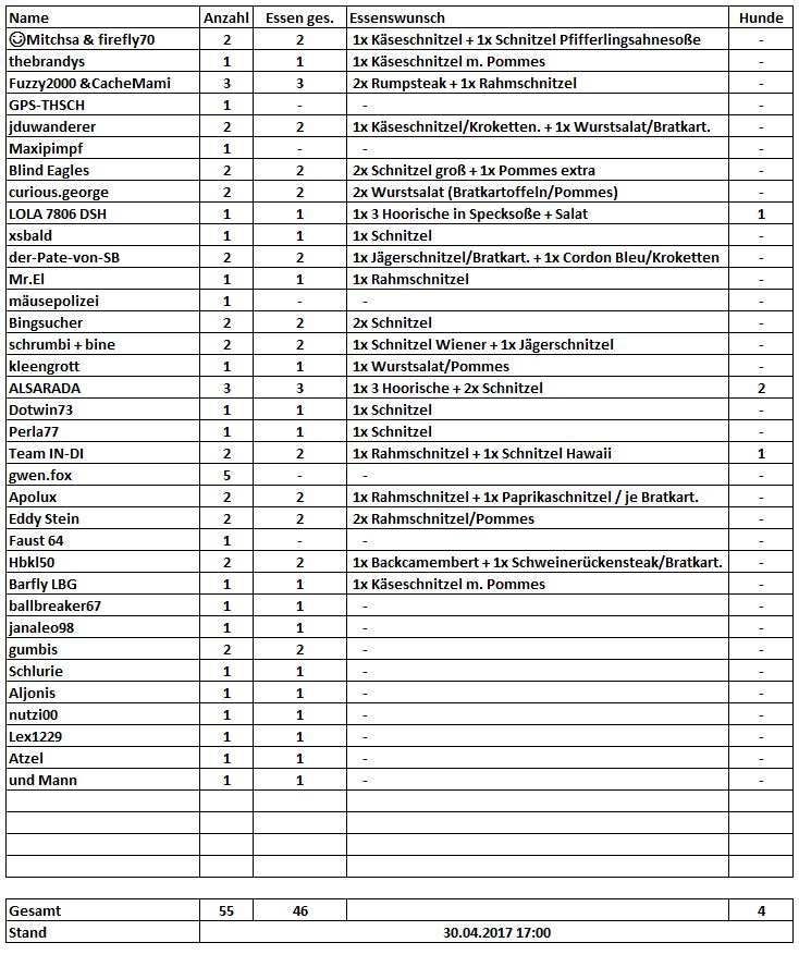 Bitte vorher angeben was ihr essen möchtet, damit die Wirtsleute besser planen können