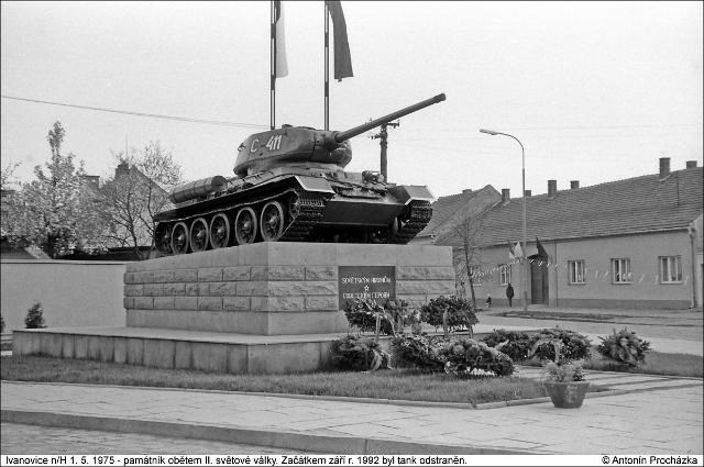 Ještě v září 1992 na betonovém podstavci stál tank T 34. Pomník byl postaven začátkem sedmdesátých let v místě kde byli pohřbeni první sovětští a rumunští vojáci padlí při osvobozování Ivanovic. Byli mezi nimi také tři kteří zahynuli v tanku který byl zasažen při vjezdu na náměstí. Na jeho památku byl také stejně označen C 411.
