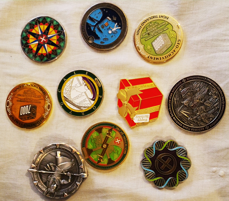 Se lhe é mostrada uma Geocoin por outro geocacher sem que tenha ficado com ela, pode "descobrí-la". Este é um registo virtual que não coloca a moeda no seu inventário, mas regista o achado no seu perfil.