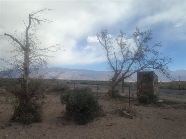 The cache is accessible easiest if travelling SOUTH on Highway 395 but can be reached if travelling North by turning onto the crossroad. The cache is NOT on the highway near the stone structure. Always use caution when re-entering the highway regardless of the direction of travel. There is a large parking area near the cache and enough room to turn around. Many LADWP workers also stop in the area as the dirt road leads up to the aqueduct. Keep a watchful eye out for free range cattle and other wildlife in the area.