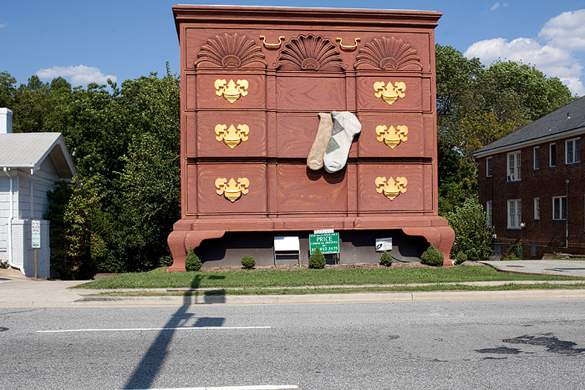 High Point, North Carolina is known as the “Home Furnishing Capital of the World.” So it’s only appropriate to celebrate the title with a giant dresser. Originally built in the 1920s, the World’s Largest Chest of Drawers was 20 feet tall. When renovated in 1996 it was expanded to 38 feet. Two giant mismatched socks that fall from one of the drawers pay homage to the city’s hosiery industry and give it an extra push of roadside charm