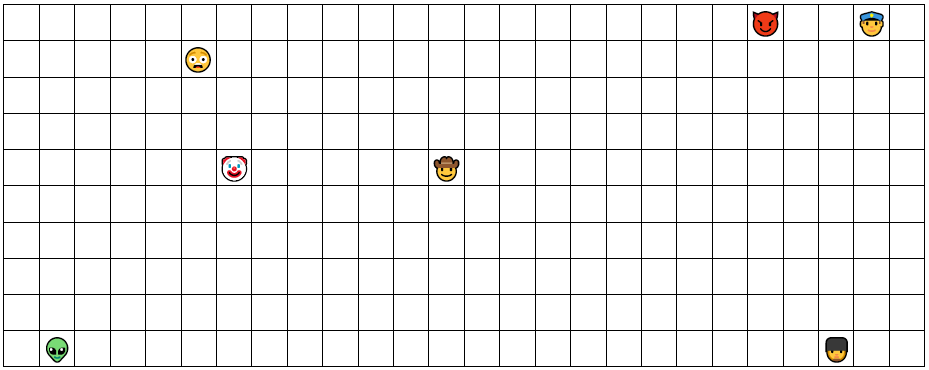 Descobre qual o azulejo correspondente no mural a cada um dos emoji (careta) da grelha abaixo e anota com que letra começa o nome.