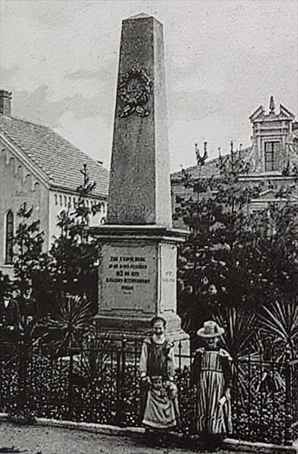 Otázka: Název místa v roce 1900, kde stál tento pomník, který byl zbořen po roce 1945 - 2 slova.