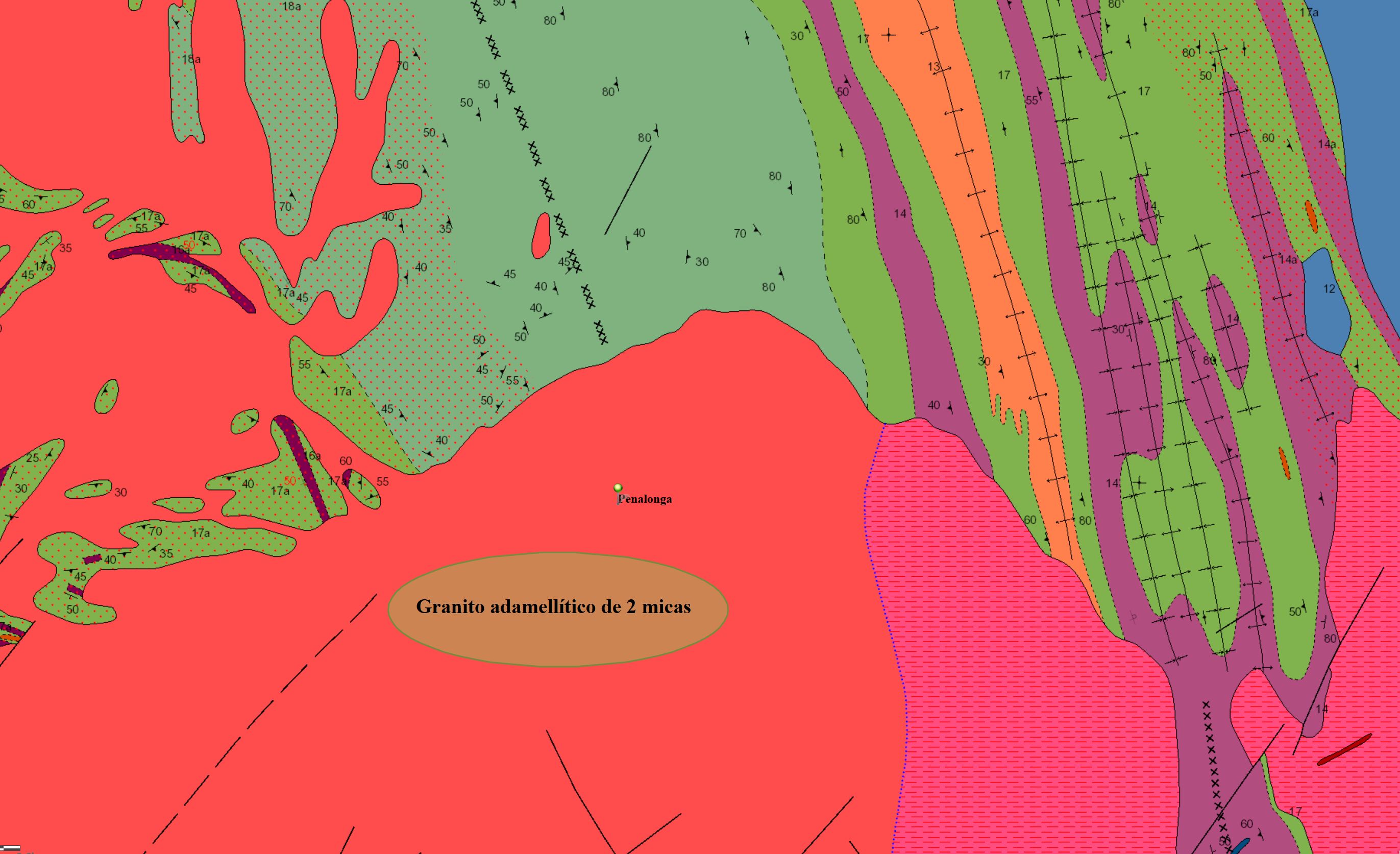 2) ¿Que tipo de granito predomina en las coordenadas dadas?