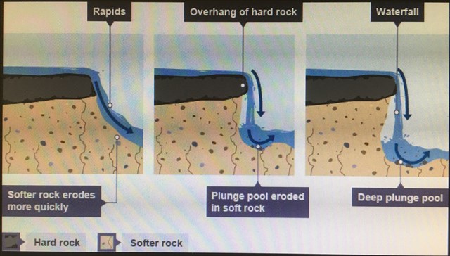 Question 1. The water splits around a large rock just as it emerges from under the bridge at the top of the falls. Why do you think this rock hasn’t been eroded away?