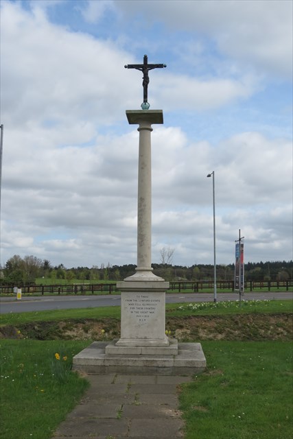 The memorial is in the form of a tall column situated at the edge of the village where the A134 crosses the A1065. This memorial lists those who laid down their lives during the Great War: details have been added to commemorate the fallen of WWII, and since. The panels bear the names of the fallen from the parishes of Lynford, Mundford, West Tofts and Cranwich. Names are recorded in full: there are no details of rank, Regiment or date of death.