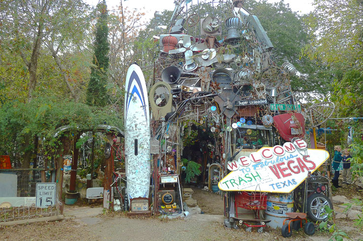 They say that one man’s trash is another man’s treasure, and nowhere is that more apt than the Cathedral of Junk in Austin. This awe-inspiring three-story monument is essentially a hodgepodge of anything that could be used to build something. Metal fences, poles, wheels, neon signs, creepy doll heads, signs with generic inspirational quotes, and much more form the structure that would look right at home in a post-apocalyptic movie. Part of the structure has even been overtaken by some of the native plant life, making the whole place feel oddly organic. The Cathedral of Junk is only open to visitors by appointment, so make sure to call before stopping by.