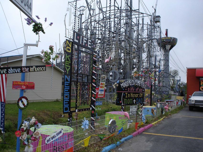 When you take a boatload of steel that expands an acre wide and 145 feet into the air, you get Billy Tripp's Mindfield. Tripp has been working on the project since 1989, and plans to be buried inside the venue when he dies. Located in the town of Brownsville, Tennessee.