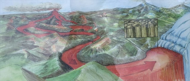 Cooling lava contacts forming cracks and even columns (Source: University of Saskatchewan).