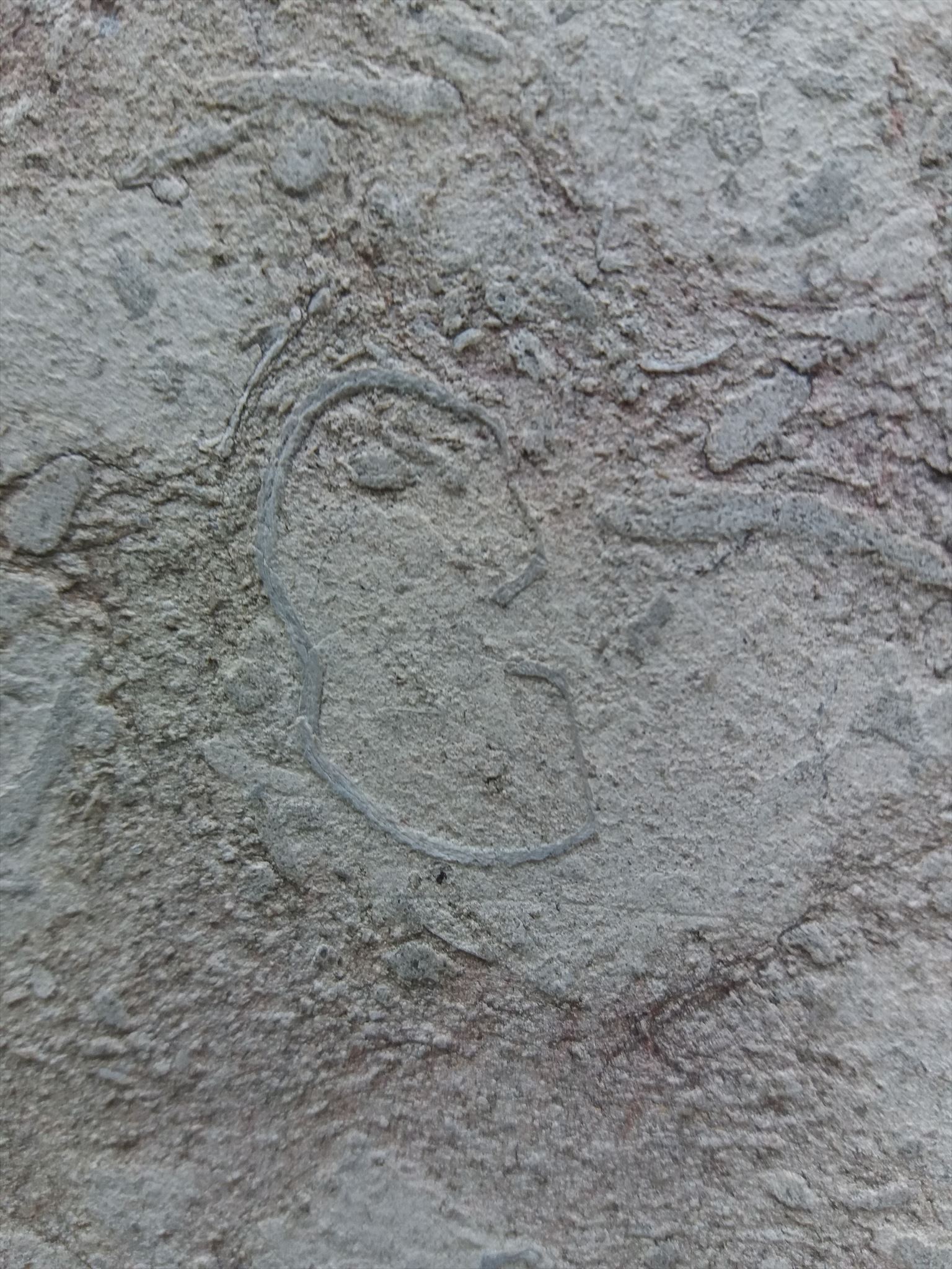 Gdzieniegdzie dostrzeżesz cienkie owalne linie, które wyraźnie odznaczają się od naszej skały. To inne z żyjących wtedy w ciepłym szelfowym morzu organizmy - ramienionogi. Te miękkie stworzenia wytwarzały grube i twarde pancerze, które przetrwały do dziś. W cienkich liniach na naszym kamieniu trudno dopatrzeć się owalnego kształtu muszli. Spróbuj wyobrazić sobie, że są to pocięte w plastry puste skorupy małż (wtedy tworzą właśnie takie elipsy). W naszym kamieniu można dostrzec ich niewiele, lecz z łatwością znajdziesz kilka sztuk. Mają zazwyczaj około 2 cm długości.