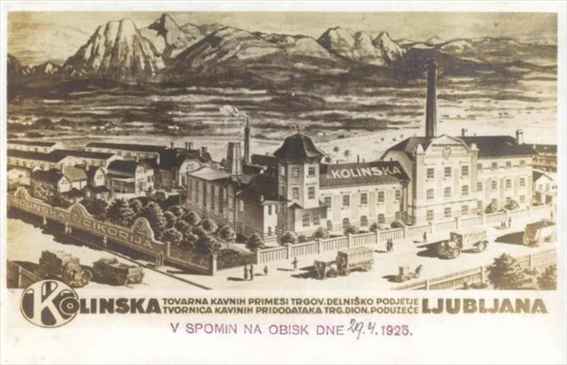 V roce 1908 byla založena dceřiná společnost ve slovinské Lublani. Projekt na stavbu továrny vypracoval opět architekt Čeněk Křička. Stavba je secesně zdobená, na fasádě se kombinovala barevná omítka s dlaždicemi, které jako by držely sloupy; za zmínku stojí také ozdobný osmiboký tovární komín. Původní Křičkův projekt umožňoval osvětlení tovární haly denním světlem velkými okny z obou stran. Meziválečná přestavba však toto zničila. Továrna pod názvem "Kolinska" vyrábí sladkosti dodnes.