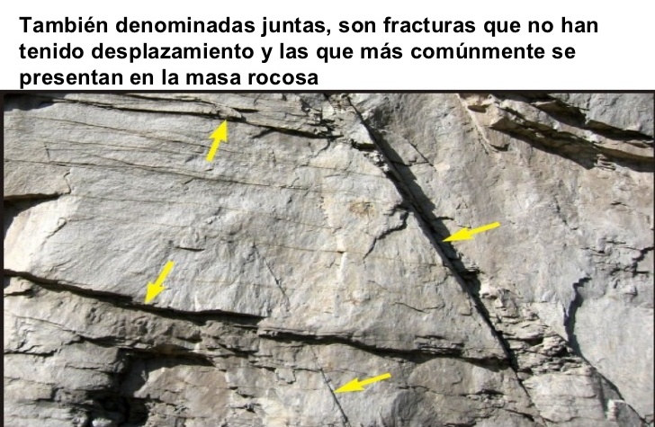 Las diaclasas son fracturas en las rocas que no presentan desplazamiento transversal que sea detectable, sólo manifiestan un poco de movimiento extensional.