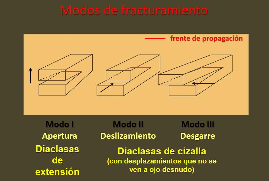 Las diaclasas corresponden a foliaciones secundarias, tanto de origen tectónico como no-tectónico, pero que no tienen desplazamientos. Entre ellas se distinguen: