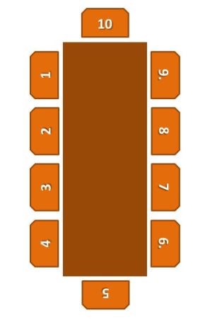 Alle sitzen hier an einem großen Tisch, wie die Plätze an dem Tisch angeordnet sind, zeigt die folgende Abbildung: