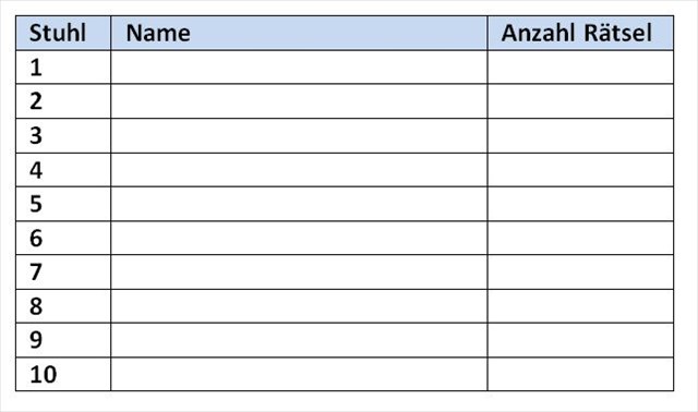 ) zusammen und lösen Rätsel –freilich mit unterschiedlichem Erfolg. Darauf wollen wir mal einen kleinen Blick werfen. (Und dieser Blick ist natürlich völlig willkürlich, alle Namen und Zahlen sind quasi erfunden und mehr oder weniger willkürlich…. fast ….)