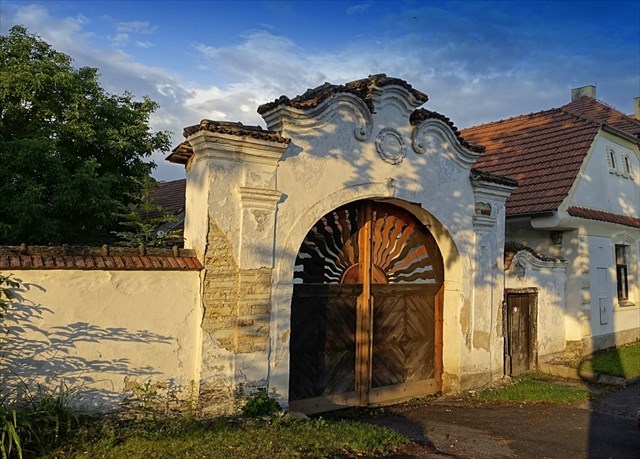 Statek čp. 8 s hospodářskými budovami a vjezdní brána klenutá valeným obloukem