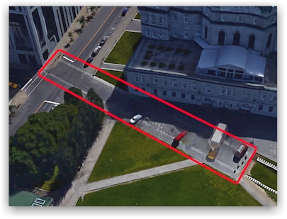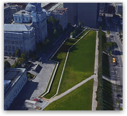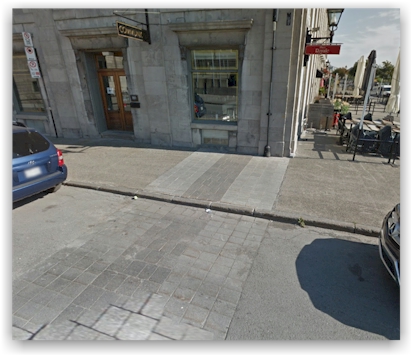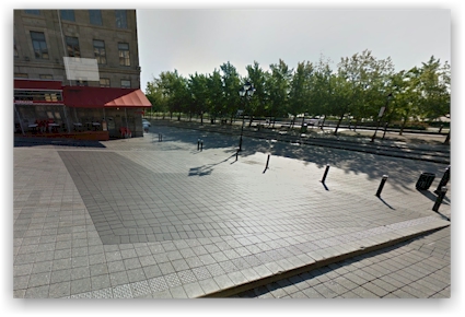 Today, to remind the site of the fortifications, ground marking is carried out in the street and sidewalk as well as in the public spaces of Old Montréal. By means of granite slabs, these markings indicate the presence of buried vestiges associated with the masonry enclosure of the fortified city.