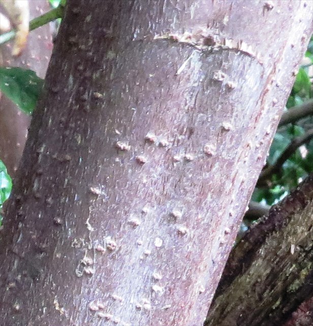 Young trees have dark smooth and knobbly bark, but it becomes rough on old trees.