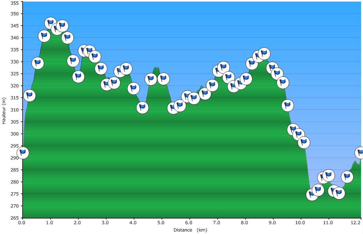 Le parcours fait environ 12,2 kilomètres pour 51caches.