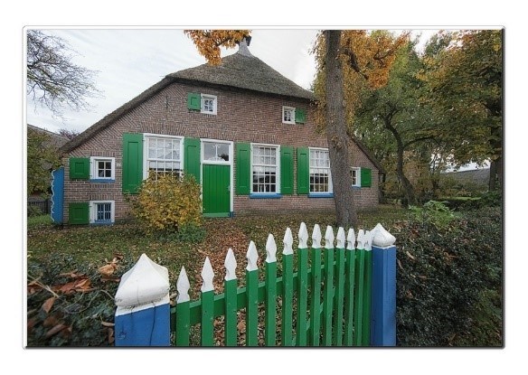 U zult nog veel rietgedekte boerderijen zien met felgroene luiken, blauwe kozijnen en een ‘levensboom’ in het glas boven de voordeur. Een deel van deze boerderijen is beschermd dorpsgezicht.