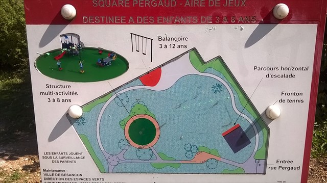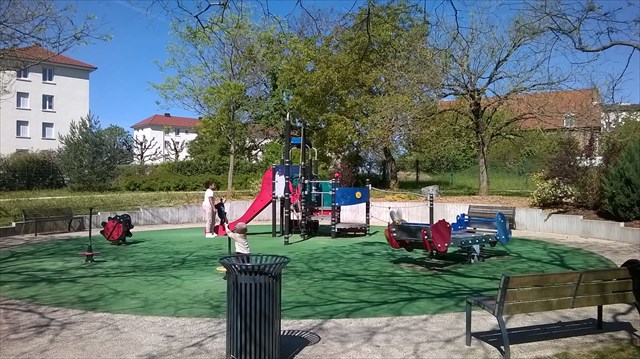 Voici un square qui comporte différentes aires de jeux pour les enfants de 3 à 12 ans.