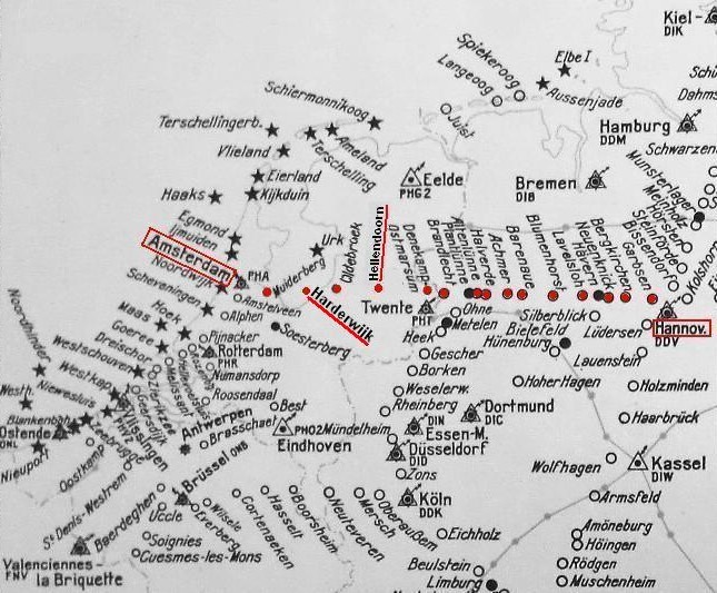 Naar men ons mededeelt zullen op het traject van het luchtvaartterrein Schiphol naar de Nederlandsch-Duitsche grens bij Ootmarsum van de route Amsterdam-Hannover, voor het luchtverkeer bij duisternis hier luchtvaartverkenningslichten worden geplaatst van aanzienlijke sterkte, namelijk van ongeveer 2 millioen Heffner kaarsen. Wegens de aan een rechtlijnige route voor het vliegen bij duisternis verbonden voordeelen is het traject van neon-herkenningslicht op Schiphol naar het Duitsch herkenningslicht, dat bij Heitel, nabij onze oostelijke grens is ontworpen, geheel als een rechte lijn uitgezet. Op die lijn zullen de lichten worden geplaatst als volgt: