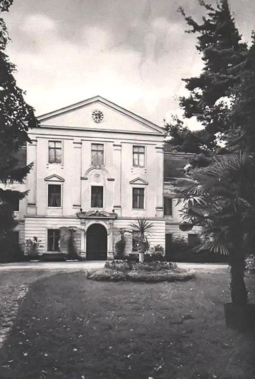 Nieopodal znajduje się niewielkie, zupełnie anonimowe, całkiem porośnięte wzgórze. Kryje ono pozostałości rozebranego ok. 1966 roku grobowca dawnych właścicieli – rodziny von Carmer [N51 37.025; E16 30.564]. Wraz z nim zlikwidowano dawny kościół ewangelicki i znajdujący się tuż przy nim cmentarz [przybliżone współrzędne nieistniejącego kościoła ewangelickiego: N51 37.028, E16 30.632]