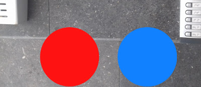 2.Among the mailbox advertising and intercom are two clearly identifiable fossils. We have covered them with two circles, one red and one blue. Tell us that hide, respectively, these circles