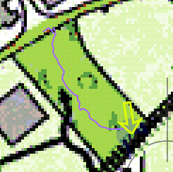 Voorbij het hek 10 meter naar rechts en dan min of meer de route van het kaartje volgen.
