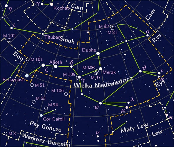 Najbardziej znanym gwiazdozbiorem naszego nieba jest niewątpliwie Wielka Niedźwiedzica. Charakterystyczną figurę, cztery koła i dyszel, tworzy siedem jasnych gwiazd. Jednak narody znad Tygrysu i Eufratu, północnej Azji, Fenicjanie, Persowie i Grecy widzieli w tym gwiazdozbiorze podobieństwo do niedźwiedzia.