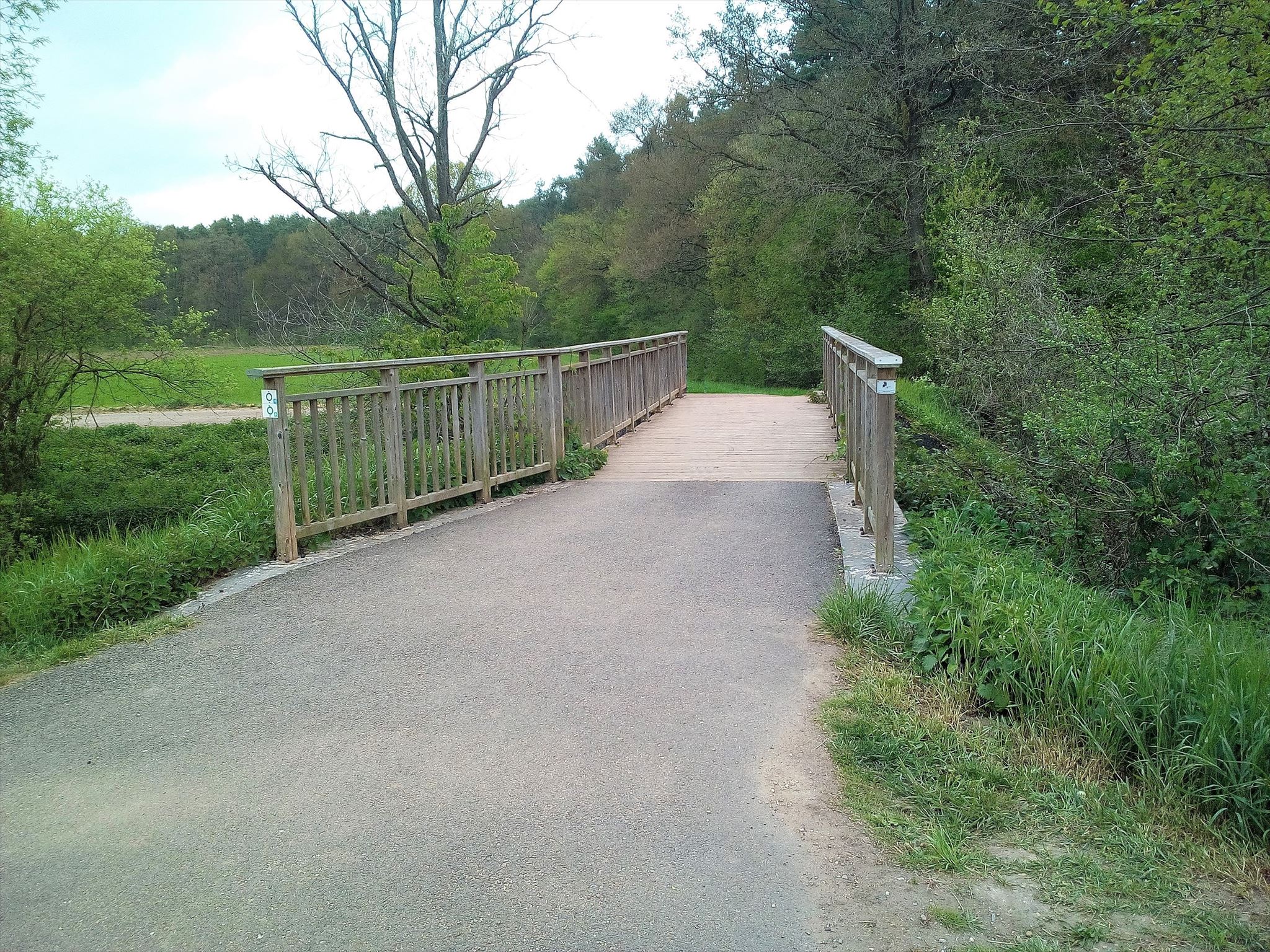 Der etwa drei Kilometer lange Spaziergang (sechs Multis) führt euch durch eine angenehme Umgebung, die zwischen Wald, Wiese, alte Eisenbahnlinie und Flüssen variiert.